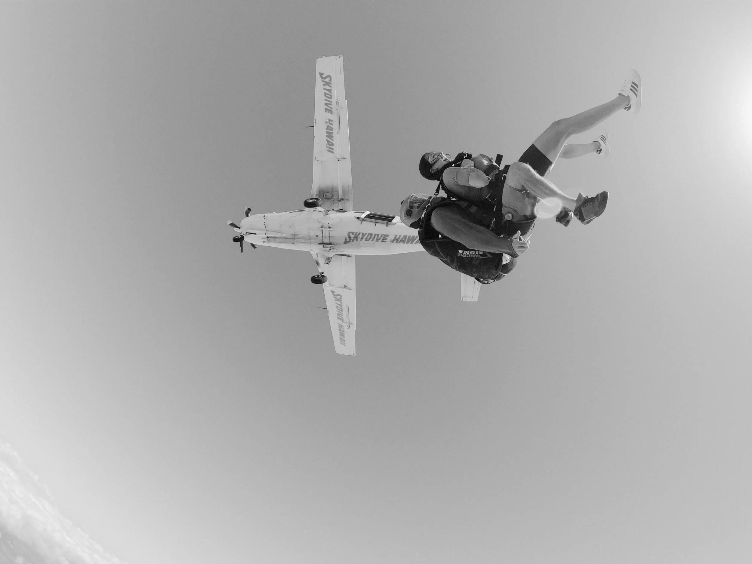 Yes, that is me falling out of a plane. My approach to work is a lot like this photo: I love taking risks, but only after I've done the research to make sure the reward is worth the leap.