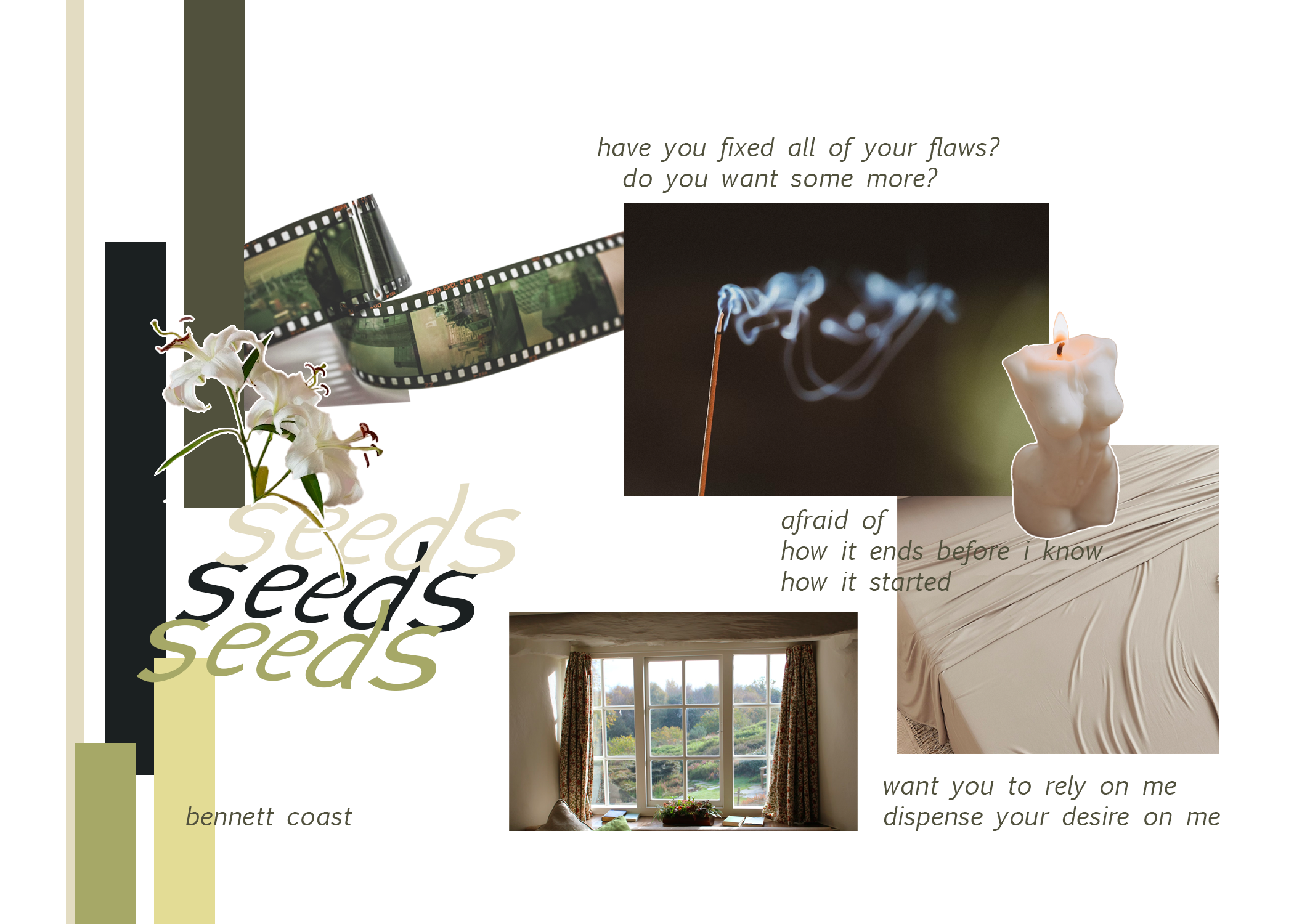 The concept board for the song "Seeds" by Bennett Coast captures the multifaceted emotions entwined with the beginnings of a relationship. The lyrics delve into the intricacies of navigating the blurred lines between friendship and something more, reflecting the uncertainty that often accompanies such situations. The song also delves into the mental toll these ambiguous connections can take on an individual. The protagonist of the song is portrayed as experiencing profound feelings for the other person, expressing a willingness to sacrifice and surrender in order to nurture and grow the connection. The concept board serves as a visual guide to encapsulate these themes, providing a foundation for creative endeavors such as photoshoots or music videos that aim to visually represent the nuanced emotional landscape depicted in the song.
