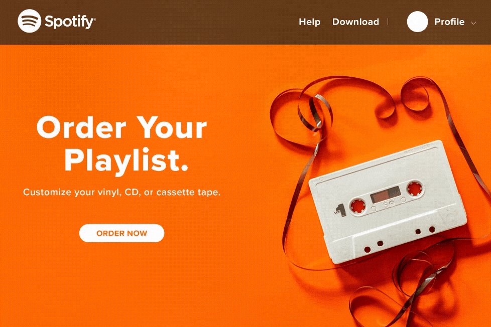 Music is meaningful to a lot of people in many different ways and plays a key part in many relationships. It’s hard to give the gift of music when it’s been intangible for the last 10 years. Todays modern version of making someone a mixtape is compiling a Spotify playlist, but it doesn’t seem as meaningful when there is not a physical element. So, what if you could order your Spotify playlist on vinyl? or mixtape? or CD?