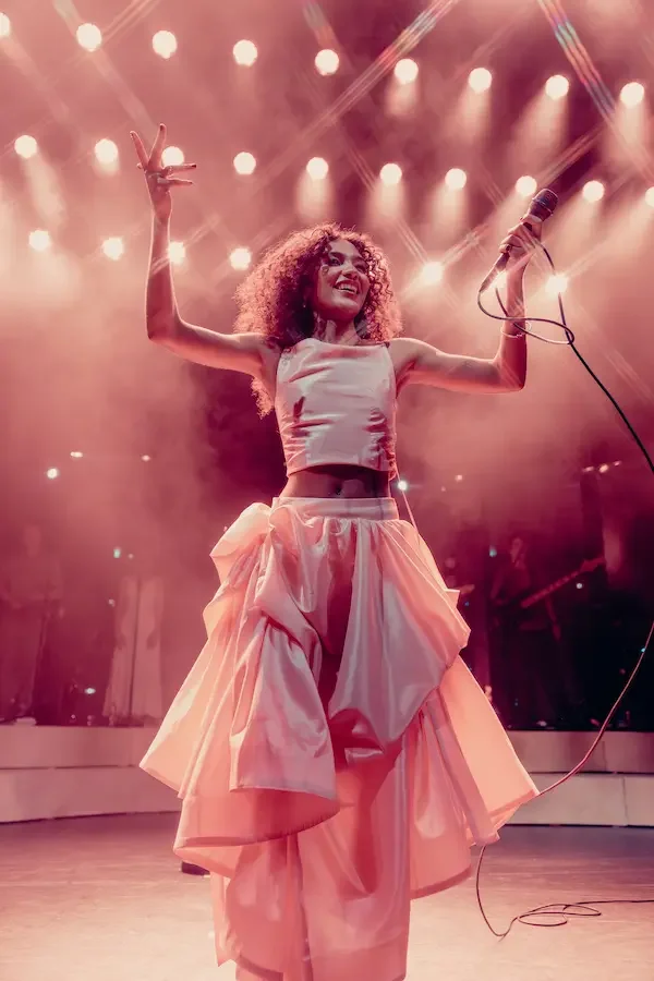 Music fades slightly, isolating Olivia Dean's vocal track for an intimate moment.