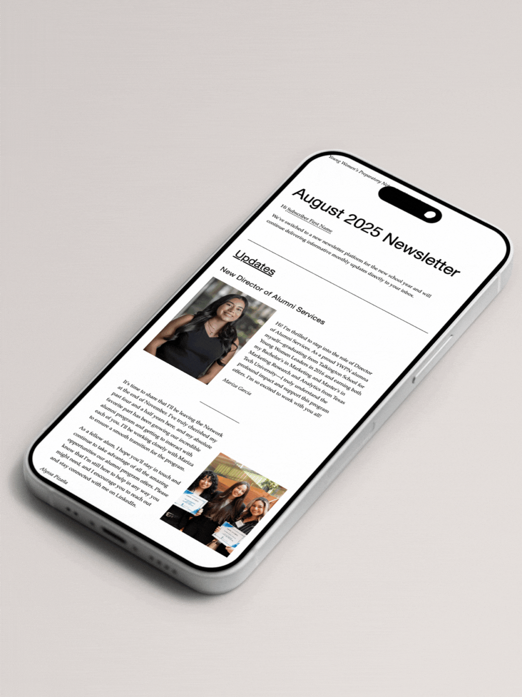 My tenure at the Young Women's Preparatory Network (YWPN) spanned nearly five years, during which I served in various mission-critical roles. For the final three years, my primary focus shifted to building the Alumni Department from the ground up, a significant undertaking that required strategic planning, operational scaling, and dedicated communication.